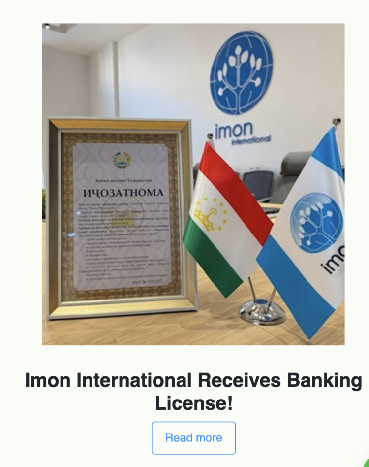 Read more: http://imon.tj/news/imon-international-receives-banking-license-a-confident-step-after-25-years-of-operation